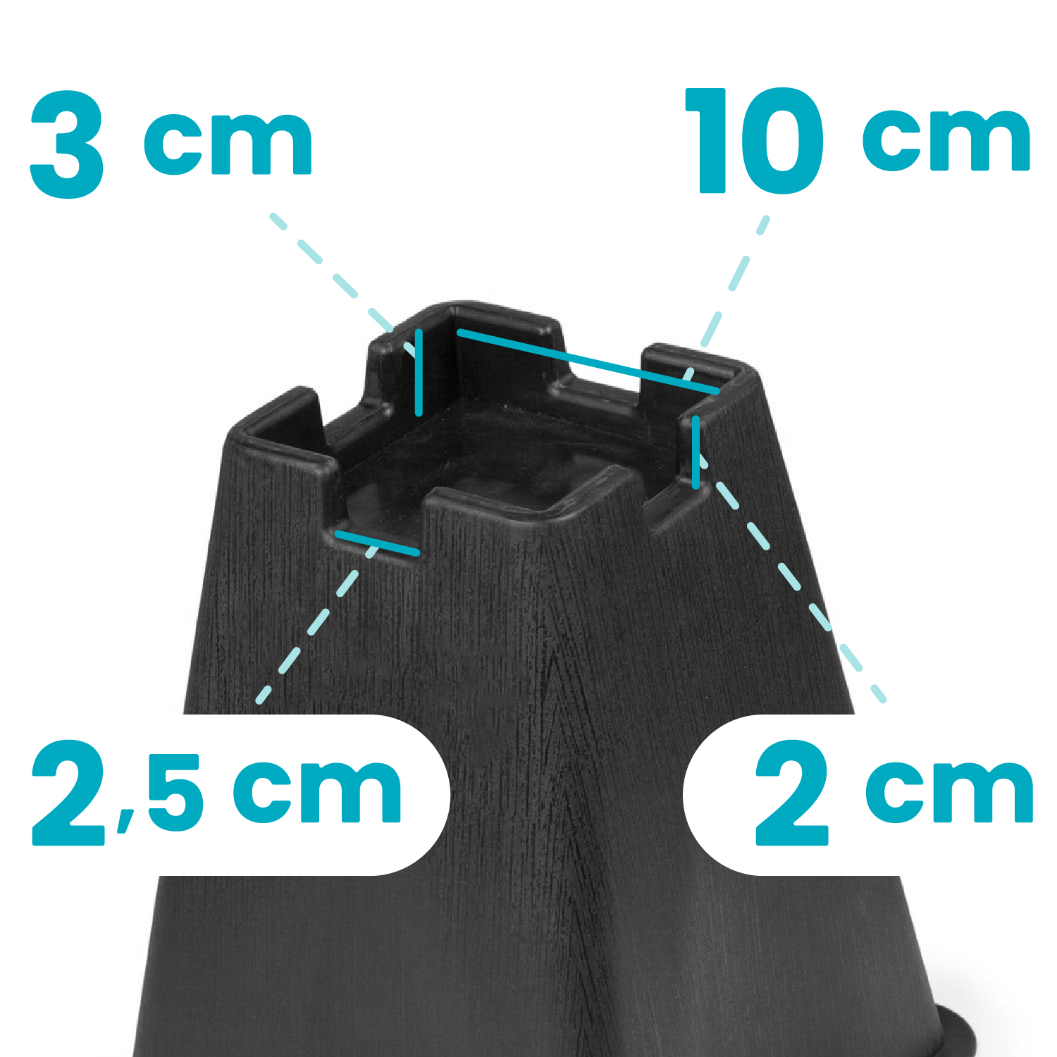 De bedverhogers zijn in verschillende hoogtes verkrijgbaar. De keuze voor de juiste hoogte hangt af van de hoogte van het bed inclusief matras. Als de gewenste hoogte 80 centimeter is, haal je de totale hoogte van het bed hier van af. Het aantal centimeters dat je overhoudt bepaalt welke maat bedverhoger je nodig hebt. Als de hoogte van het bed meer dan 73 centimeter is, heb je de bedverhogers van 7 centimeter nodig. Als de hoogte van het bed minder dan 73 centimeter is, heb je de bedverhogers van 22 centimeter nodig. De binnenmaat van de bedverhoger à 22 centimeter is 10 centimeter. De binnenmaat van de bedverhoger à 7 centimeter is 9 centimeter. Let op: de hoogte bedraagt het aantal centimeters dat het bed wordt verhoogd. De daadwerkelijke hoogte van de bedverhogers is hoger. Bereken van te voren altijd goed of de bedverhogers passen, ook wanneer je een boxspring bed hebt. Het is belangrijk om te letten op de juiste maat en het maximale draagvermogen bij het aanschaffen van bedverhogers. De bedverhogers worden per 4 stuks geleverd.
